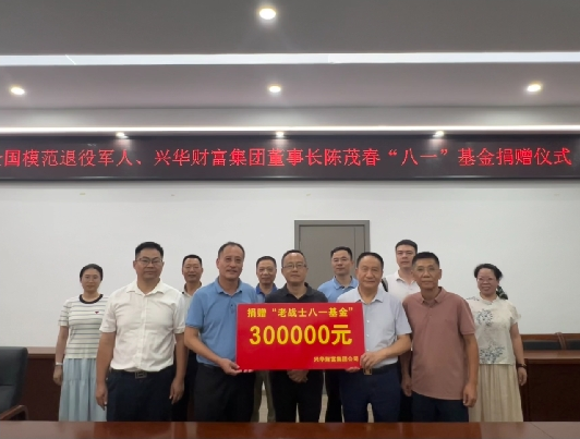 8月20日,全国模范退役军人、兴华财富集团董事长陈茂春“八一”基金捐赠仪式在福安市退役军人事务局举行。全国模范退役军人、兴华财富集团董事长陈茂春,福安市委常委、常务副市长黄凌,市退役军人事务局党组书记、局长孙乐声等人参加仪式。