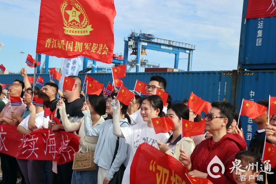 泉州各界群众以饱满热情共同迎接“丝路方舟”停靠泉州港(陈小阳摄)