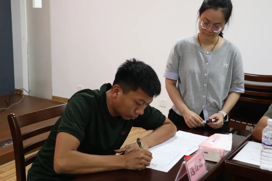 选岗环节依据退役士兵服役表现量化评分排序,按照“分数优先、遵循志愿”的原则,由高分到低分依次进行。退役士兵在现场工作人员的引导下,自主选择心仪单位并签字确认,过程井然有序、公开透明。最终,11名退役士兵全部成功选岗,安置率达到100%。选岗结果现场公布,得到了退役士兵们的广泛认可。