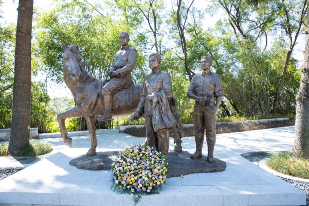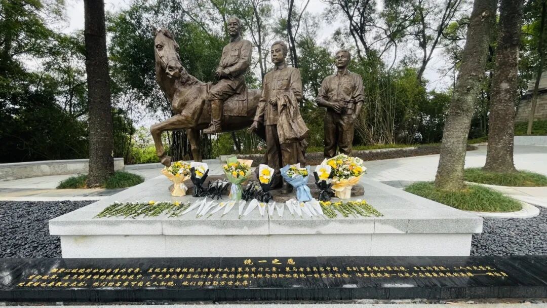 在全国首座以吴石及其副官聂曦、王正均为主题的艺术纪念群雕前,瞻仰者敬献的鲜花整齐摆放,寄托着人们对革命先辈的无尽追思与崇高敬意。各界群众自发前来追寻英烈足迹,深刻感悟隐蔽战线先辈“于无声处听惊雷”的坚定信仰。