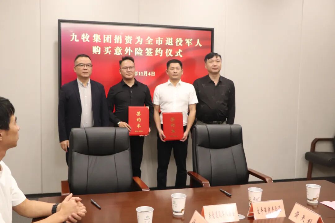 11月4日,南安市举行退役军人意外险捐赠签约仪式,九牧集团出资30万元为全市3.4万多名退役军人及“三属”(烈士遗属、因公牺牲军人遗属、病故军人遗属)统一购买团体人身意外伤害保险。