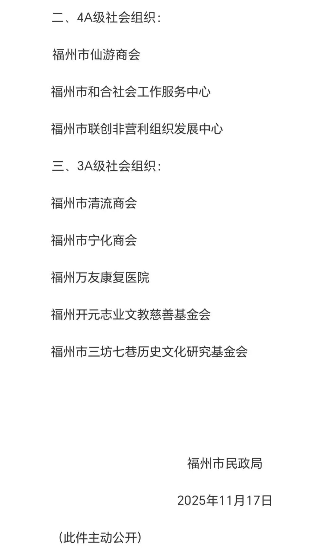 11月17日,福州市民政局正式发布公告,福州市退役军人关爱协会等六家单位成功获评AAAAA(5A)级社会组织称号。