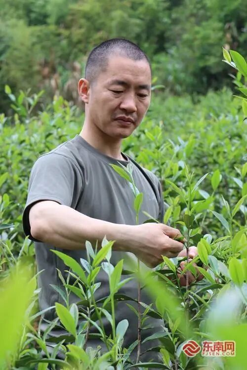 陈金华在自己茶山采摘茶叶东南网记者郑正华摄