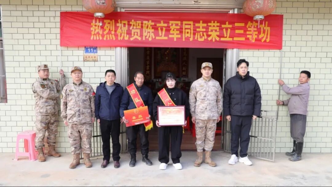 12月26日,三明市明溪县城关乡、盖洋镇锣鼓喧天、鞭炮齐鸣,由县人武部、县民政和人力资源社会保障局(县退役军人事务局)组成的送喜报队伍,深入城关乡坪埠村,盖洋镇盖洋村、杨地村、常坪村,为4户荣立三等功的现役军人家庭送去立功喜报,让军人军属共享荣耀时刻,在全县营造“一人立功、全家光荣”的浓厚氛围。