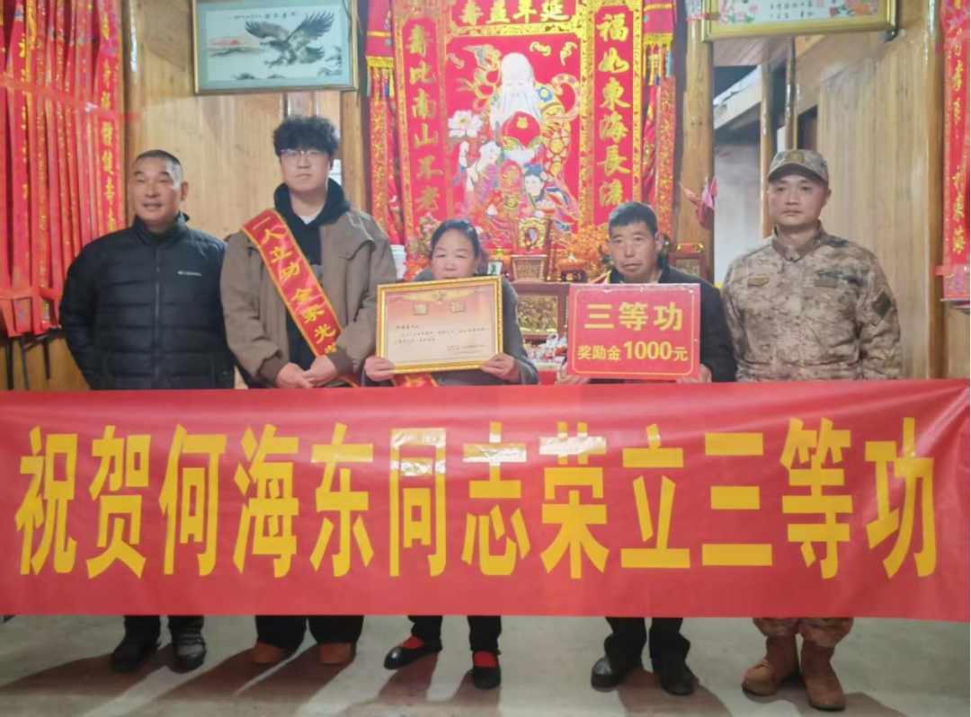 近日,宁德市周宁县民政和人社局(退役军人事务局)联合县人武部、乡镇工作人员,分赴狮城镇、咸村镇,为荣立三等功的现役军人许德凯、何海东家庭送上立功喜报与慰问,让“一人立功、全家光荣”的氛围在闽东山水间愈发浓厚。