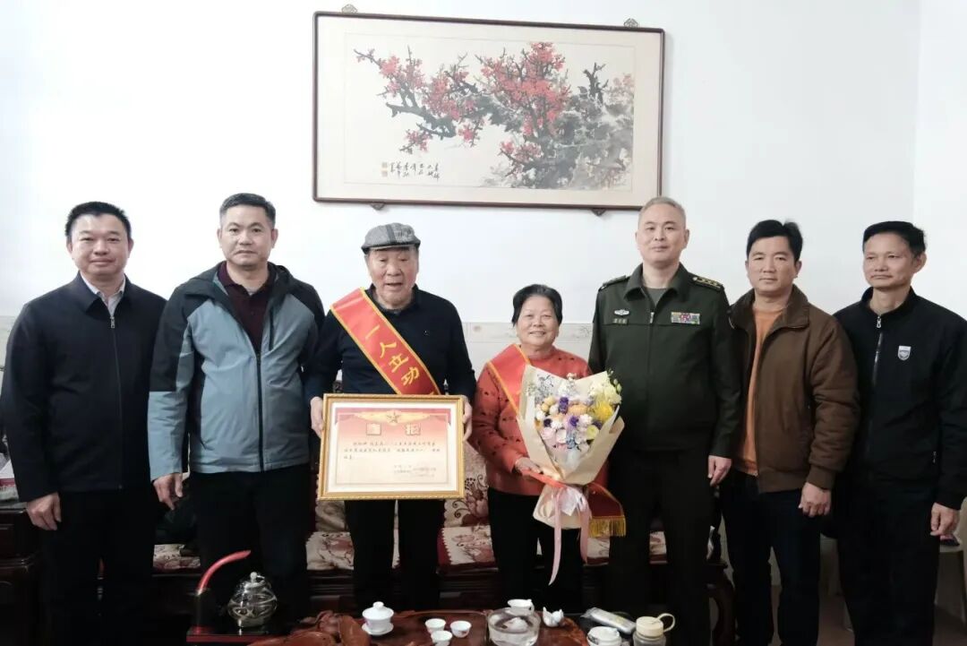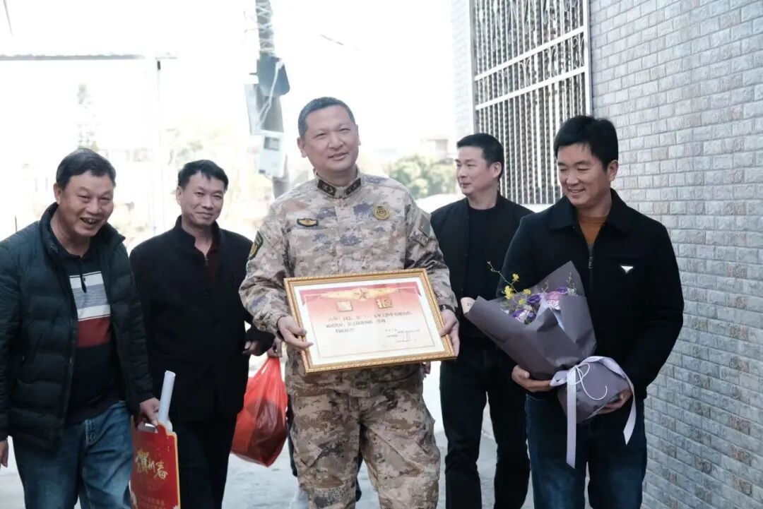 为弘扬拥军优属、拥政爱民的优良传统,营造尊崇军人、关爱军属、支持国防的浓厚氛围,诏安县人武部、县退役军人事务局联合桥东镇武装部、退役军人服务站组成慰问组,逐一走进七位立功军人的家庭,将烫金的喜报、慰问金和“一人立功,全家光荣”的荣誉绶带送到军属手中。锣鼓声声、鞭炮阵阵,每户家中都洋溢着自豪与欢乐。