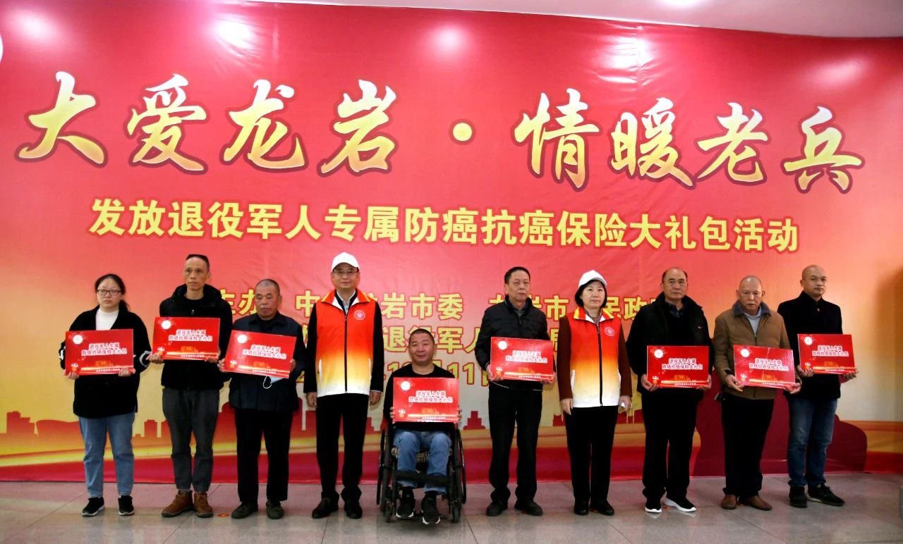 2022年12月,举行“大爱龙岩情暖老兵”——发放退役军人专属防癌抗癌保险大礼包活动