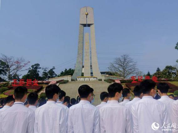 福建工业学校“承志班”的学生们在陵园祭扫。人民网 林盈摄