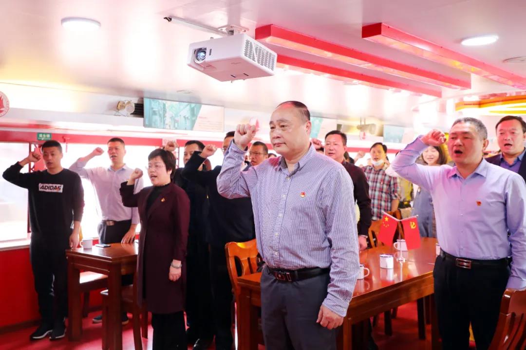 “我志愿加入中国共产党,拥护党的纲领,遵守党的章程……”参加党日活动的60多名党员在“红船”上整齐列队,神情庄重、精神饱满,高举右拳,在福州市退役军人局党组书记、局长张则铭的领誓下,面对鲜红的党旗重温入党誓词。党员们纷纷表示,通过重温入党誓词,时刻提醒自己在工作和生活中牢记党员身份,充分发挥党员的先锋模范作用,以实际行动践行入党宣誓时的庄严承诺。