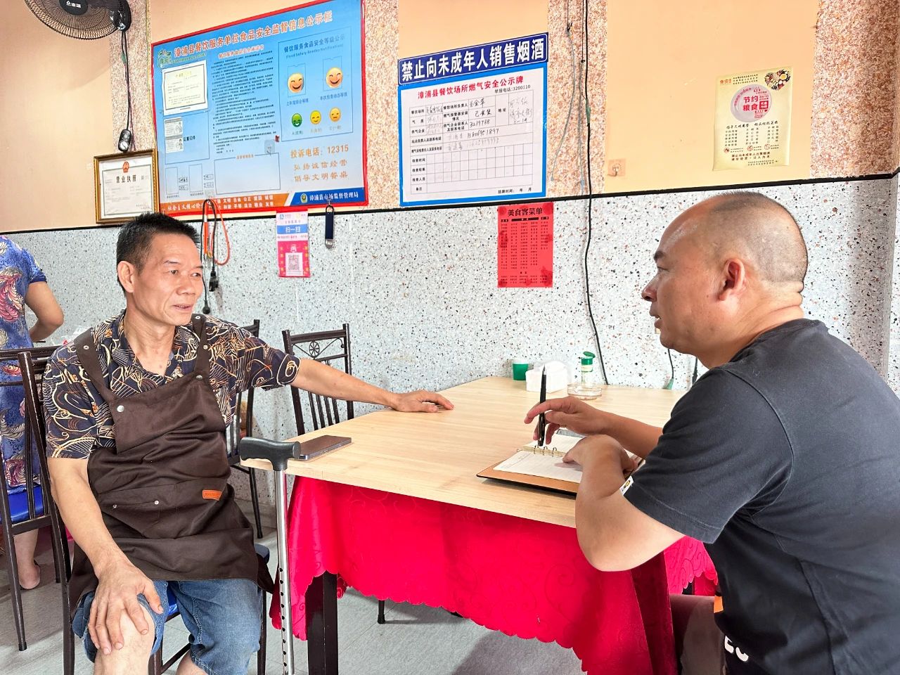 “老板,多少钱?”子弟兵吃完欲付款时,黄文元用手遮住二维码不让他们扫码,并直截了当回复,今天免费吃面不收钱。就在双方你来我往“僵持不下”时,一名干部偷偷找到墙壁上另外一个二维码,以迅雷不及掩耳之势付完了账。当听到付款声音时,黄文元有些失落,并一再表示,说好了免费怎么还能收你们钱。