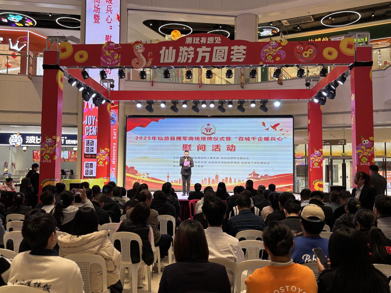 近日,仙游县“拥军商场”授牌仪式暨“百城千企暖兵心”慰问活动在仙游县方圆荟举办。拥军商场负责人、爱心企业和门店、受助退役军人代表等100余人参加活动。