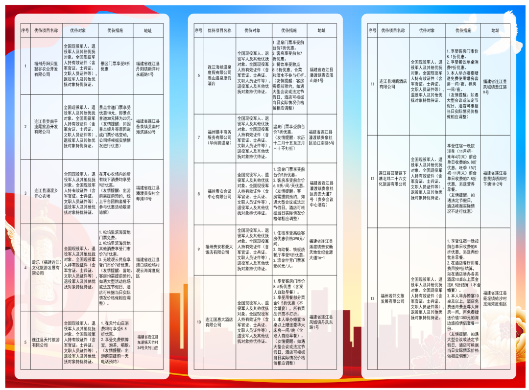 连江素有“拥军优属、拥政爱民”的光荣传统,双拥根基深厚、传统绵长,已蝉联2次“全国双拥模范县”、7次“省级双拥模范县”的荣誉称号。“下一步,我们将继续扩充‘拥军大联盟’的体量,在医疗、教育、文旅等现有合作领域基础上,进一步拓展拥军优属工作的深度与广度。”连江县退役军人事务局相关负责人表示,他们还将积极开展形式多样、内容丰富的拥军优属活动,为退役军人及其他优抚对象提供更优质、更便捷、更暖心的服务,共同谱写连江县双拥工作新篇章。