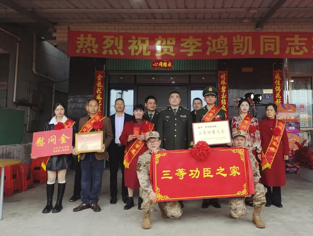 2023年与2024年,华安县委书记、县长亲自带队,为连续两年荣立二等功和二级表彰的现役军人林裕昌家庭送上喜报。锣鼓喧天,舞狮欢腾,功臣的花车巡游乡里,绶带与红花映衬着军属欣慰的笑容。2024年,现役军人李鸿凯荣立三等功,恰逢新婚,双喜临门之际,军地领导再次登门送喜报,掀起新一轮“崇尚英雄、关爱军属”的热潮。