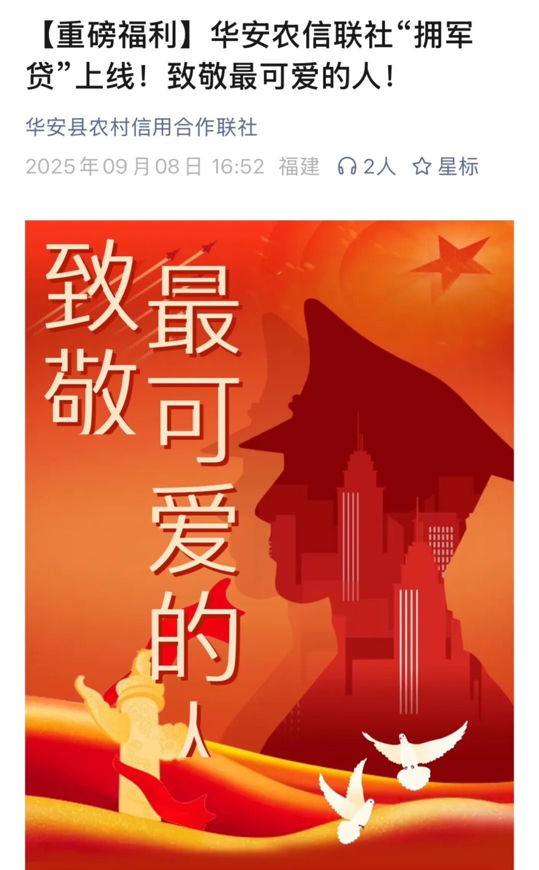 拥军暖流,亦涌动在金融支持的第一线。今年9月,华安农信联社正式推出“拥军贷”,首批授信额度达1000万元。该产品专为退役军人量身定制,具有额度高、期限长、利率优、用途广等特点,以实实在在的金融服务,为退役军人创业就业铺就暖心之路。