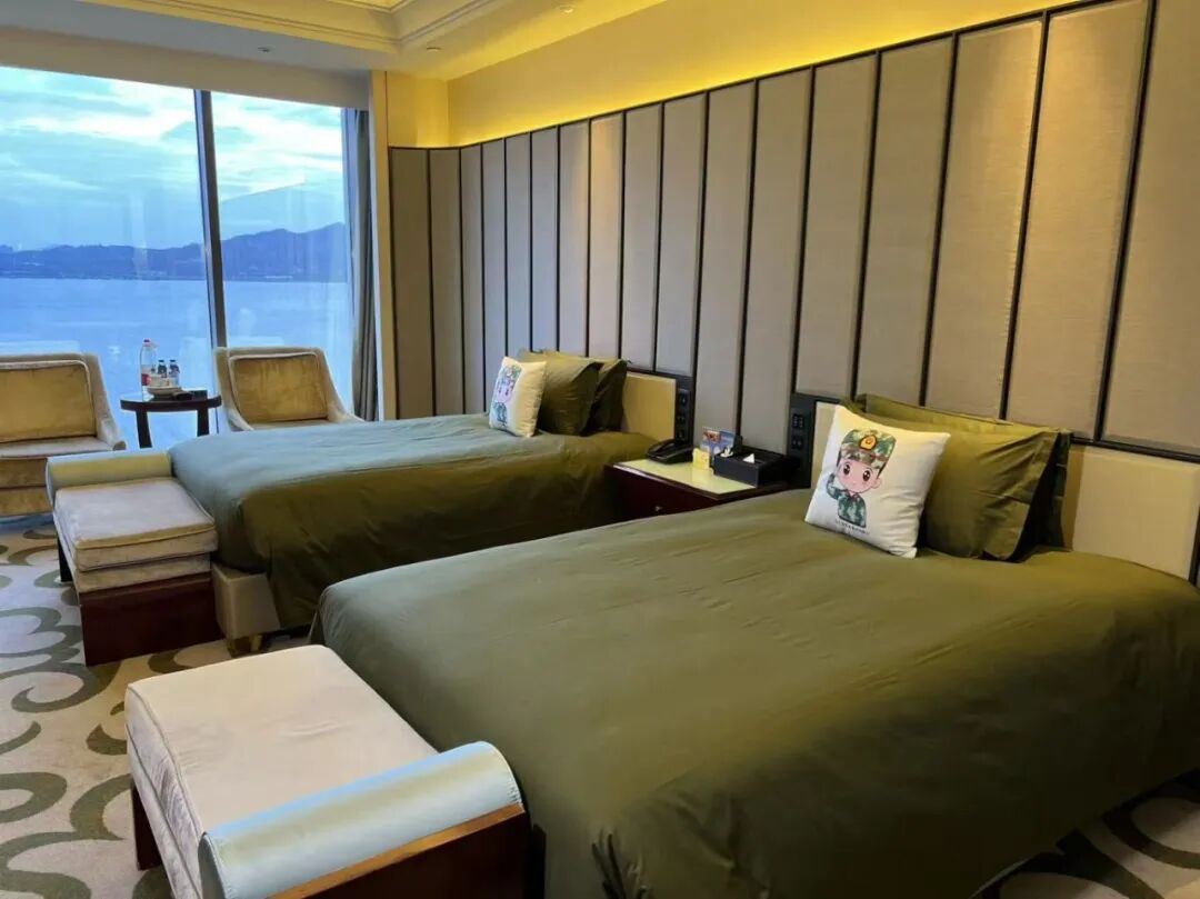 驿站推出拥军主题客房,摆放拥军宣传手册及军旅特色物品,营造“兵至如归”的温馨氛围。现役军人、退役军人及同行家属,享受机场、动车站免费接送服务并按最低协议价优先办理入住。入住期间,还可免费使用游泳池及户外温泉公园。此外,优待对象在酒店订婚、结婚免收场地费,并赠送婚房,喜宴享受专属折扣优惠。