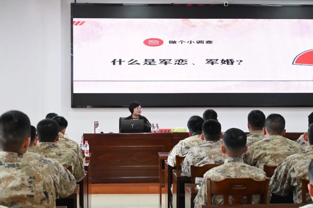 讲座伊始,该所主任吴丽娜律师以“什么是军恋”为切入点,结合前期开展的“军嫂小调查”,真实呈现了军婚家庭在团聚、沟通、子女教育等方面的特殊处境,引起在场官兵共鸣,迅速拉近了彼此距离。