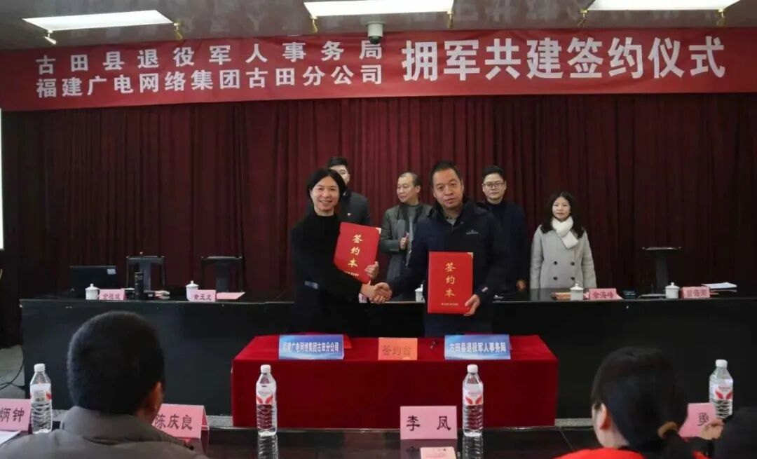 为持续擦亮古田县社会化拥军工作品牌,1月28日,宁德市古田县退役军人事务局与福建广电网络集团股份有限公司古田分公司(以下简称“古田广电网络分公司”)隆重举行“崇军服务·广电同行”战略合作协议签约仪式。各乡镇(街道)退役军人服务站负责人、古田广电网络分公司干部职工代表共同见证这一重要时刻。