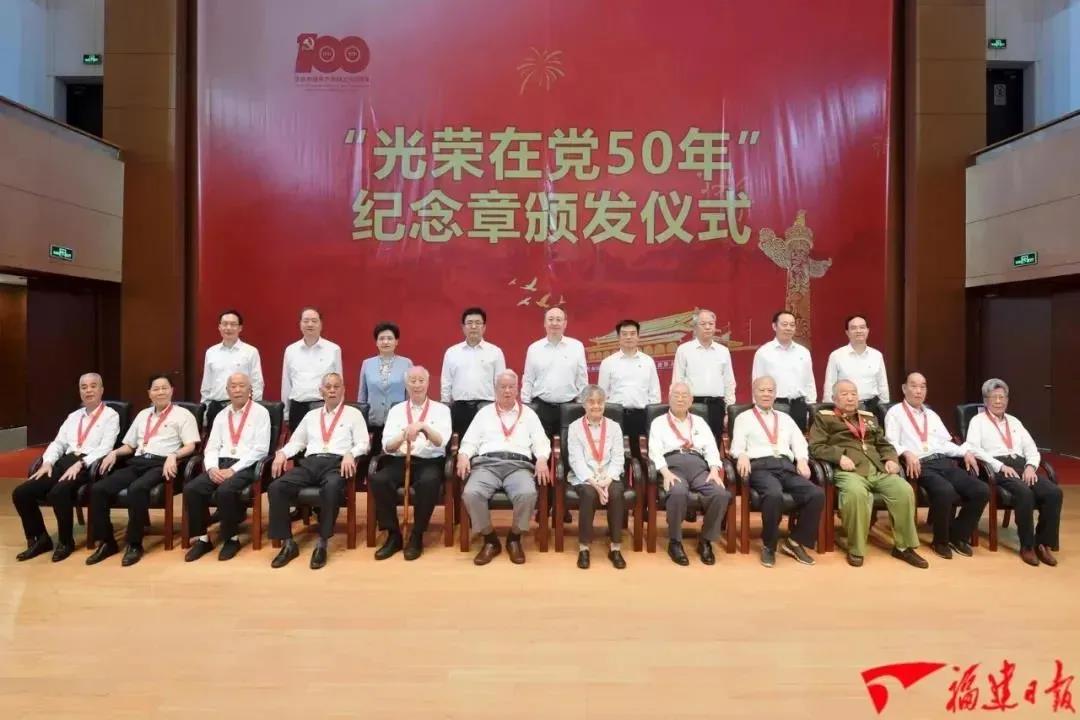 6月23日,福建省委举行“光荣在党50年”纪念章颁发仪式,向福州市军休干部王秉正、何玉华等12名在榕老党员颁授纪念章。省委书记尹力代表省委向老党员表示热烈祝贺,向大家长期以来为福建发展作出的重要贡献表示衷心感谢,并通过他们向全省广大老党员致以亲切问候和崇高敬意。