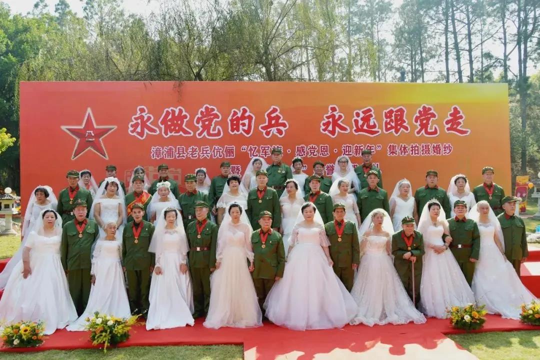 近日,漳浦县退役军人局邀请22对老兵伉俪,组织“永做党的兵、永远跟党走”集体拍摄婚纱照暨“幸福老兵”荣誉颁贺典礼。曾保家卫国、铁骨铮铮了一辈子的老兵们,在这天向妻子献上一份迟到了半世纪的郑重表白——拍一组婚纱照。