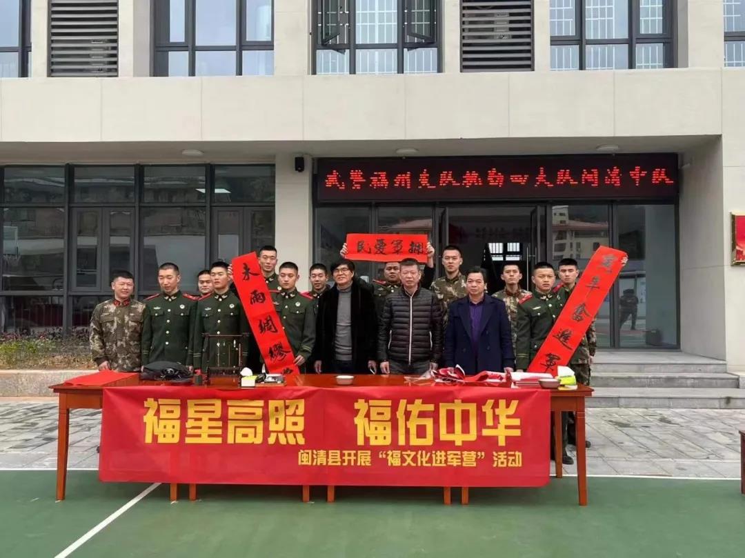 1月26日,闽清县在驻梅部队营区举办“福星高照、福佑中华”“福文化进军营”活动,邀请闽清县文学艺术界联合会的书法家现场义写春联,让“福文化”走进官兵,共叙军民鱼水情。