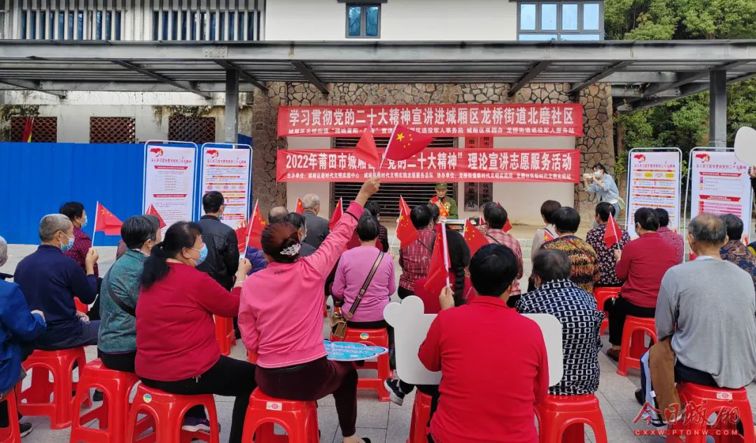 11月28日上午,莆田市城厢区龙桥街道新时代文明实践所联合区退役军人事务局、区双拥办、龙桥街道退役军人服务站,组织老兵宣讲团成员走进北磨社区宣讲党的二十大精神,为现场40余名群众和基层工作者上了一堂特别的“思政课”。