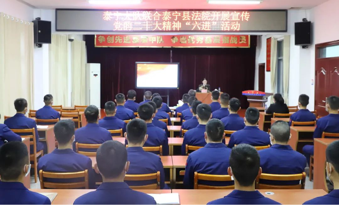 近日,泰宁法院维军合议庭法官依托“背包法庭”工作模式,到泰宁县森林消防大队及朱口村“维军法官工作室”,原汁原味宣讲党的二十大精神,共话军民鱼水情。