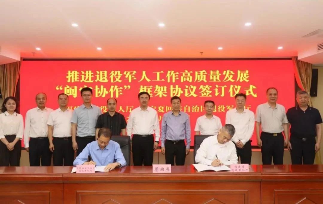 4月18日,福建省退役军人事务厅、宁夏回族自治区退役军人事务厅在福州签署“闽宁协作”框架协议,共同推进退役军人工作高质量发展。