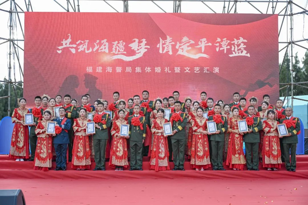 8月22日,由福建海警局主办、平潭海警局承办、平潭综合实验区社会事业局等部门协办的“2023山盟海誓——爱在岚岛,情定七夕”集体婚礼暨文艺汇演在平潭举办。当天,23对来自全省各地的海警执法员新人及家属举办了典雅庄重的传统中式婚礼。