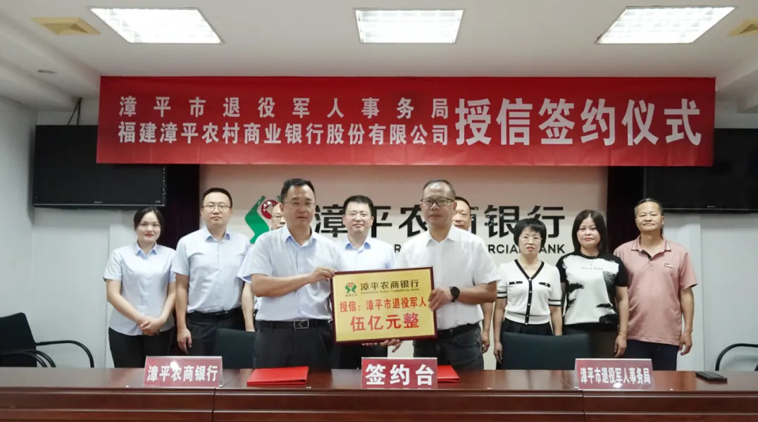 4月17日,漳平农商银行与漳平市退役军人事务局举行授信签约仪式。漳平农商银行向漳平市退役军人授信5亿元,此次授信仪式是在前期签订战略合作协议的基础上进一步深化合作的有益探索,协议签订后,双方将充分发挥各自优势,共同启动在拥军优抚、搭建退役军人就业创业融资平台、进一步完善对军人及退役军人的服务保障体系等领域开展深入合作。