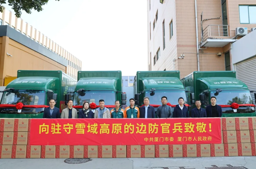 1月9日上午,厦门市退役军人事务局、厦门市双拥办、厦门夏商民兴超市有限公司及中国邮政速递物流股份有限公司厦门市分公司共同举行“情系边海防”2025年春节慰问品发车仪式,一车车满载着厦门人民深情厚谊的新春大礼包,通过慰问专车被送往5000多公里外的雪域高原,为驻守在那里的边防官兵们送上来自厦门的新春祝福。