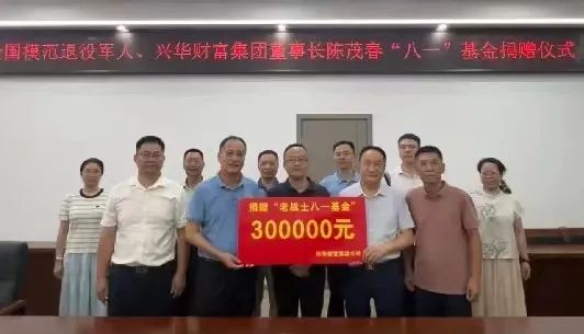 8月20日,全国模范退役军人、兴华财富集团董事长陈茂春“八一”基金捐赠仪式在福安市退役军人事务局举行。仪式上,陈茂春宣布继2024年向福安市慈善总会捐赠30万元后,再次追加捐赠30万元,并承诺此后每年将持续捐款30万元,专项用于资助当地生活困难的退役军人及其子女完成高校学业。
