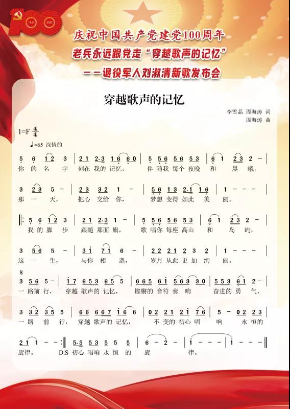 刘淑清本次发布的新歌《穿越歌声的记忆》,作为福建省退役军人事务部门和广大退役军人庆祝建党100周年的献礼作品,尽情抒发了新时代新福建退役军人对党的感激和对祖国的热爱之情,充分表达了他们“退役不褪色,永远跟党走”的坚定信念和积极投身全方位推进高质量发展超越的无限热情。