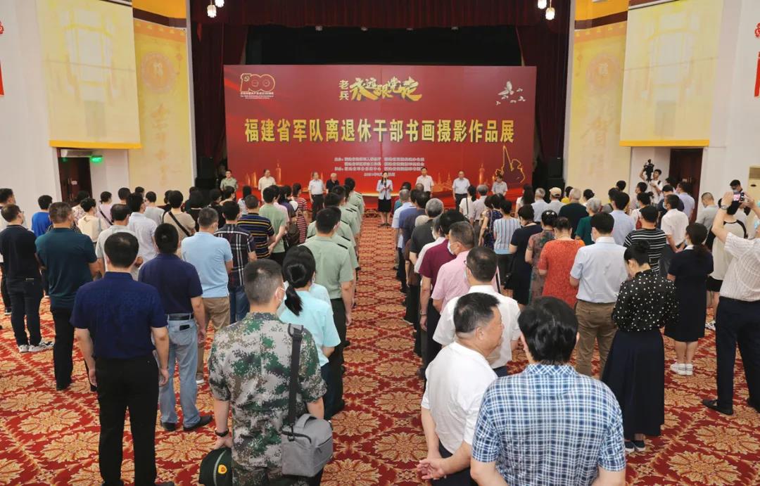 为庆祝中国共产党成立100周年,热情讴歌党的光辉历史,大力弘扬我们党重视退役军人工作、关心退役军人的优良传统,集中展现广大军队离退休干部跟党同心同行、顽强拼搏奋斗的精神风貌,努力营造尊重退役军人、尊崇军人的浓厚氛围,6月30日上午,省退役军人厅、省双拥办、省军区政治工作局和省爱国拥军促进会联合举办“老兵永远跟党走”福建省军队离退休干部书画摄影展。省退役军人厅党组成员、副厅长郑敏,省军区政治工作局副主任陈忠胜,省爱国拥军促进会会长、省民政厅原厅长黄序和等,与百余名书画摄影爱好者参加开幕式并观展。