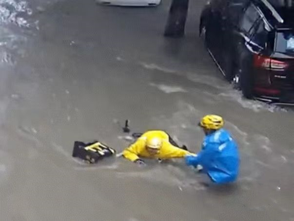 恰巧看见同事连人带车被水冲走
