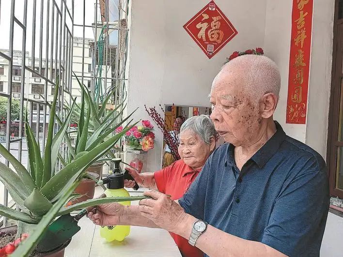 如今,夫妻俩儿孙满堂、四世同堂。陈春明每天早起,练太极拳、到白岩公园散步,回家途中买菜。郑新珠帮忙老伴打理阳台上的花花草草……相濡以沫,恩爱如初。