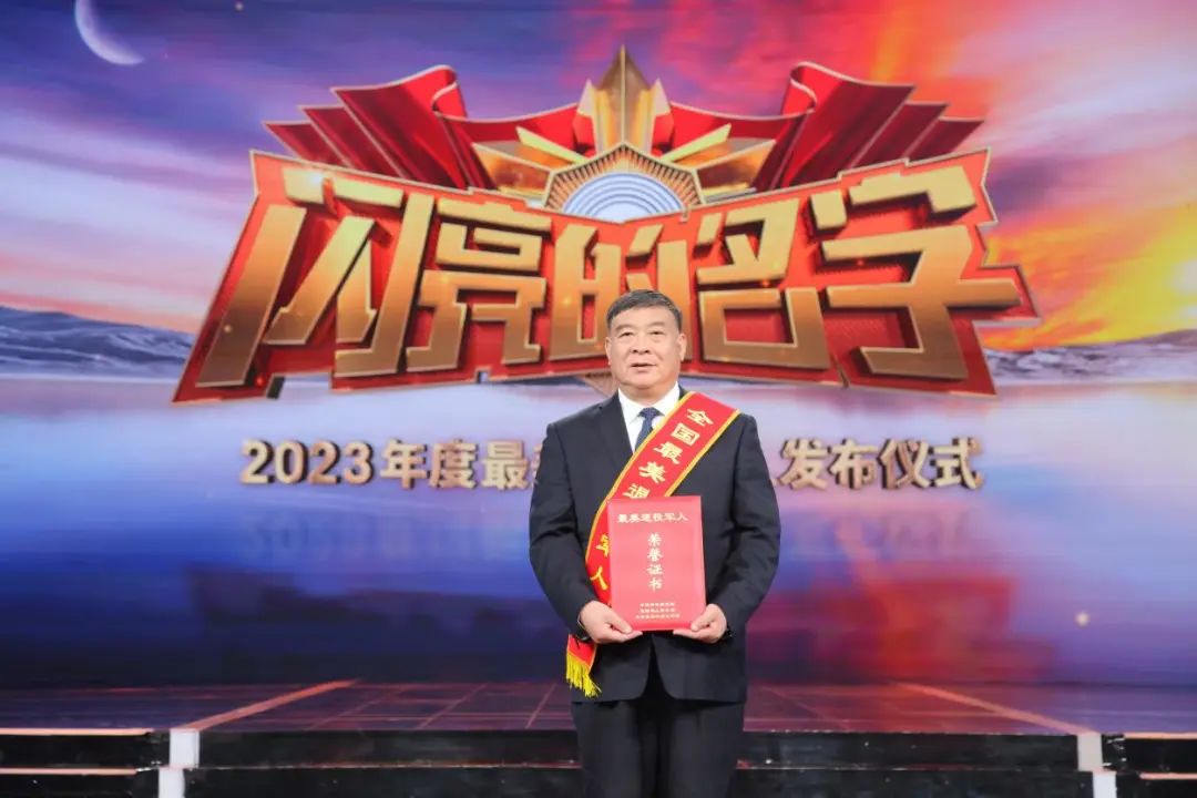 退役军人事务部副部长马飞雄(右一);中央军委政治工作部主任助理李军(左一)为10位2023年度“最美退役军人”颁发证书
