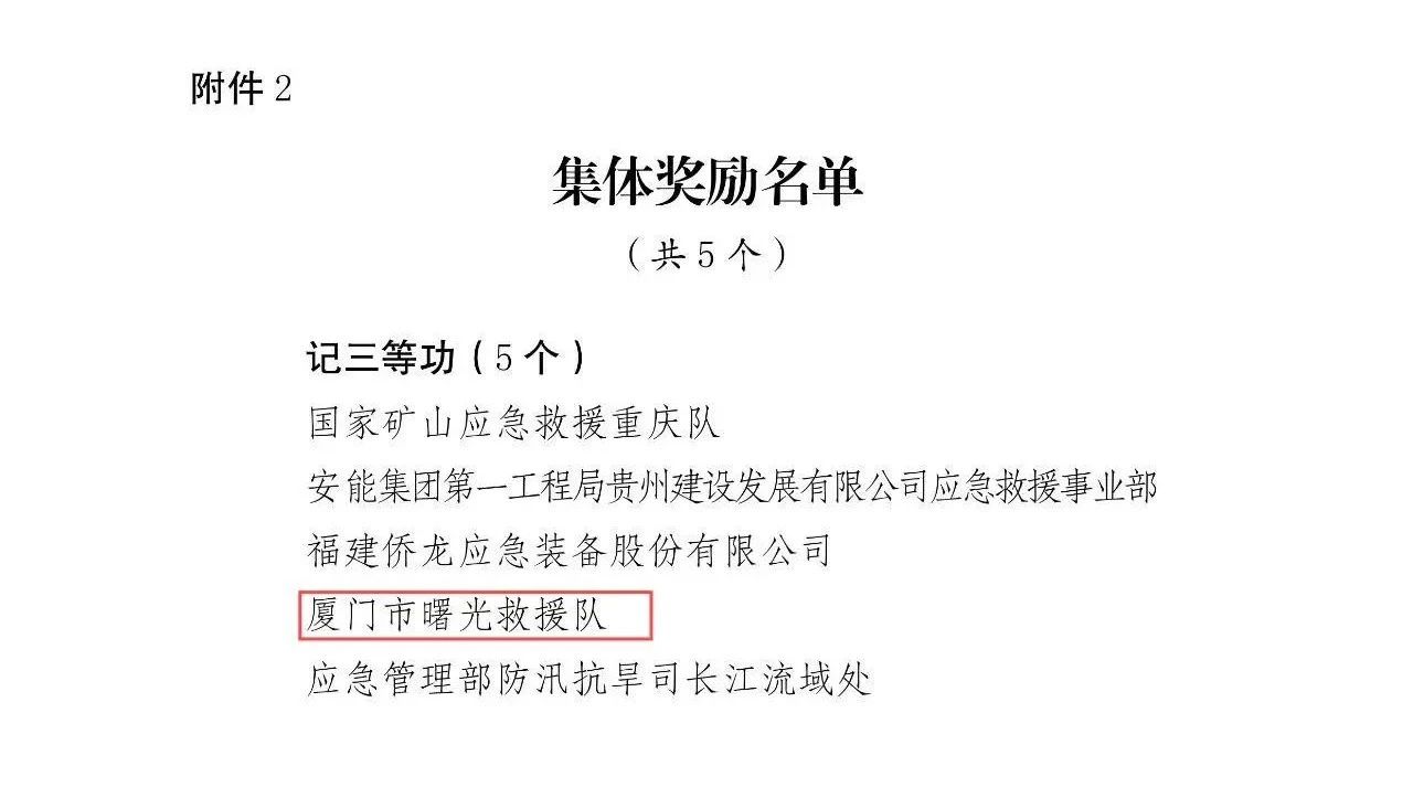 这次被应急管理部记三等功,不仅是对厦门市曙光救援队的褒奖,更是对厦门全体退役军人的激励,希望更多的退役军人能够像他们一样,以实际行动践行初心使命,为社会贡献自己的力量。