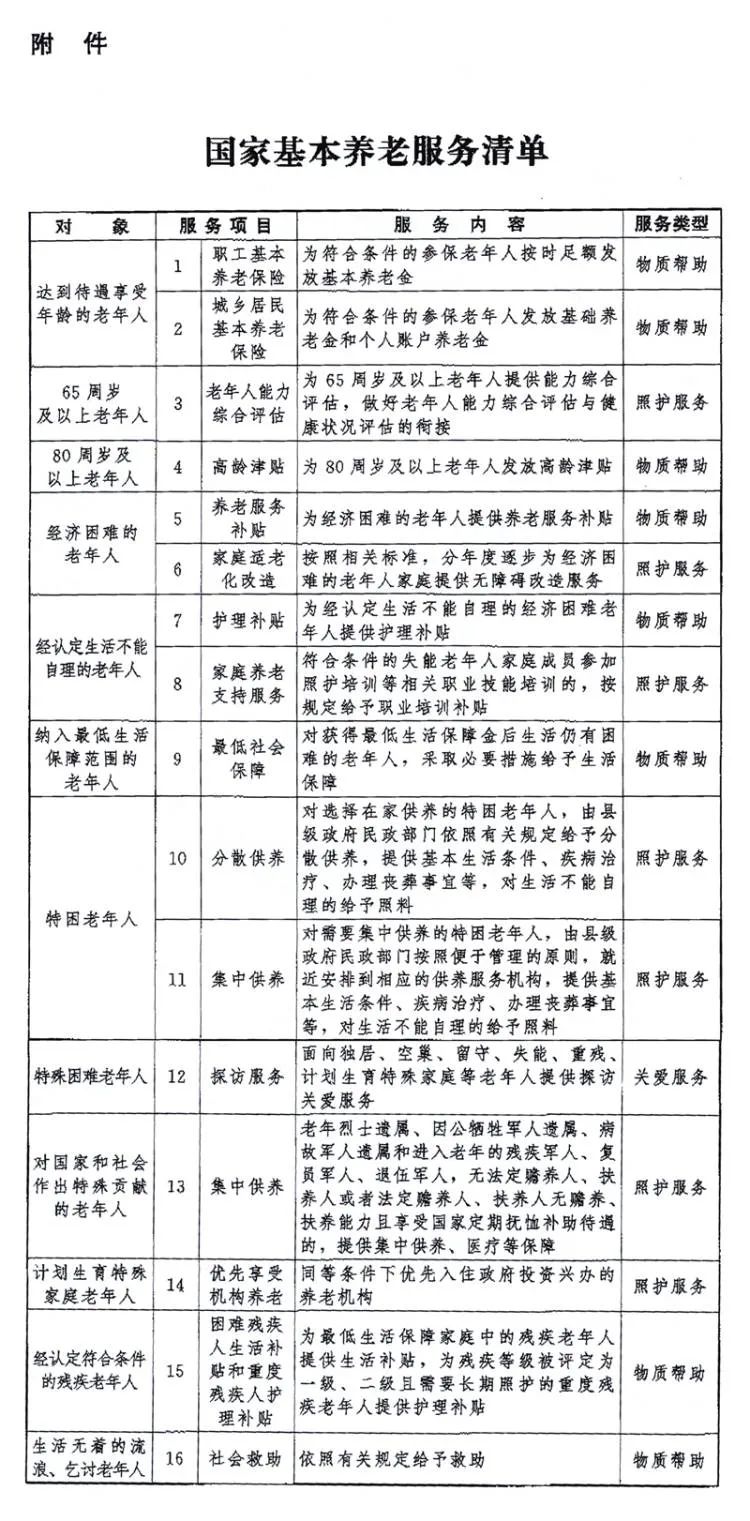 国家基本养老服务清单