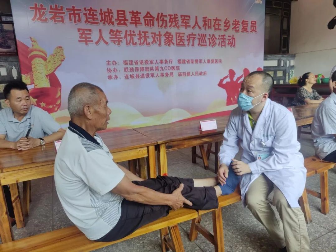 据了解,此次由省退役军人事务厅组织福建省荣誉军人康复医院、中国人民解放军联勤保障部队第九〇〇医院、龙岩市连城县退役军人事务局等单位联合开展为期六天(6月12日-6月17日)的“2023年全省残疾军人和在乡老复员军人等优抚对象医疗巡诊活动”,通过医疗巡诊活动入乡入户,切实解决残疾退役军人和优抚对象“找专家难”“看病难”的问题,让老兵切身感受到党和政府的温暖。活动前两日累计服务优抚对象近百人,接下来,医疗巡诊队将在莲峰镇、姑田镇、北团镇设置巡诊点,继续为周边12个乡村的残疾军人和在乡老复员军人、烈属、功臣模范等优抚对象进行免费诊疗。