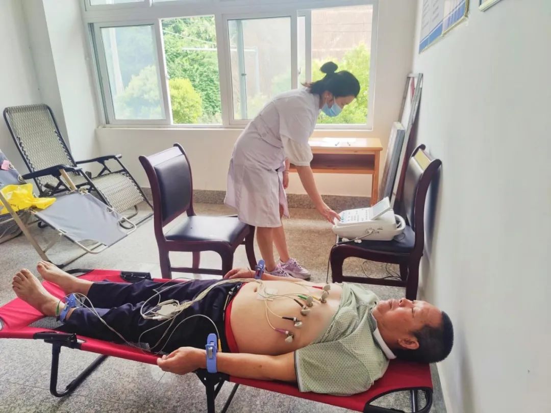 ↑13日朋口镇优抚对象在做心电图检查