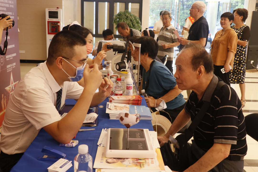 义诊现场,福州爱尔眼科医院的专家团队通过视力检查、验光仪器等科学手段,为退役军人、军属及省直职工进行眼底检查、白内障检查、青光眼检查等多项眼科疾病筛查,并为眼部出现异常的退役军人提供诊疗意见。耐心细致地向退役军人讲解眼科疾病防治的基本常识,围绕干眼症、老花眼等老年人常见眼部疾病,给出日常护理及治疗的建议。