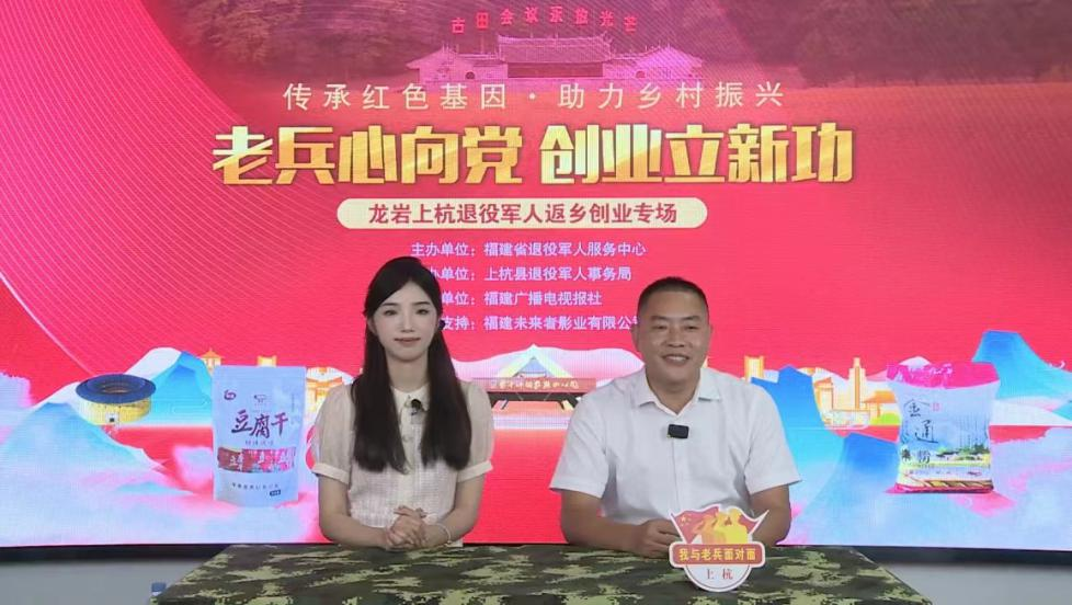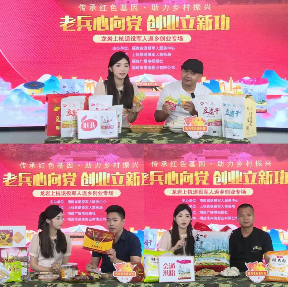 本场直播间设在上杭县瓦子街“八·一”上杭老兵之家,这是在退役军人事务部关怀指导下专门为老兵打造的集八项功能于一体的综合服务平台。直播中,通过现场品尝、展示、讲解、抽奖等形式,向广大网友推介了上杭县退役军人江贤善、陈俊宇、朱庆乾创新创业传承的“旧县豆腐”、上杭萝卜干系列产品、金通米粉等特色农产品,彰显了退役军人永葆本色、苦干实干、勇于担当的优秀品质和良好精神风貌。