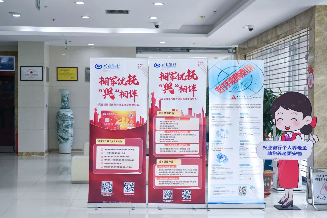 据悉,兴业银行福州分行已为军人及退役军人等优待对象开立“拥军卡”近千张,首批发放退役军人创业贷款突破3500万元。