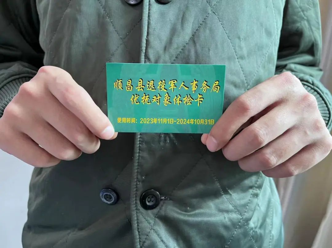 “以前体检要带医保卡、身份证等,感觉很麻烦,有了这张专属体检卡就方便多了,别看是张小卡片,但都是实名的,有效期还是一年,找个空闲时间带这张卡去顺昌县总医院,就能享受免费体检。”84岁的高阳乡参战老兵黄皇华高兴地说。