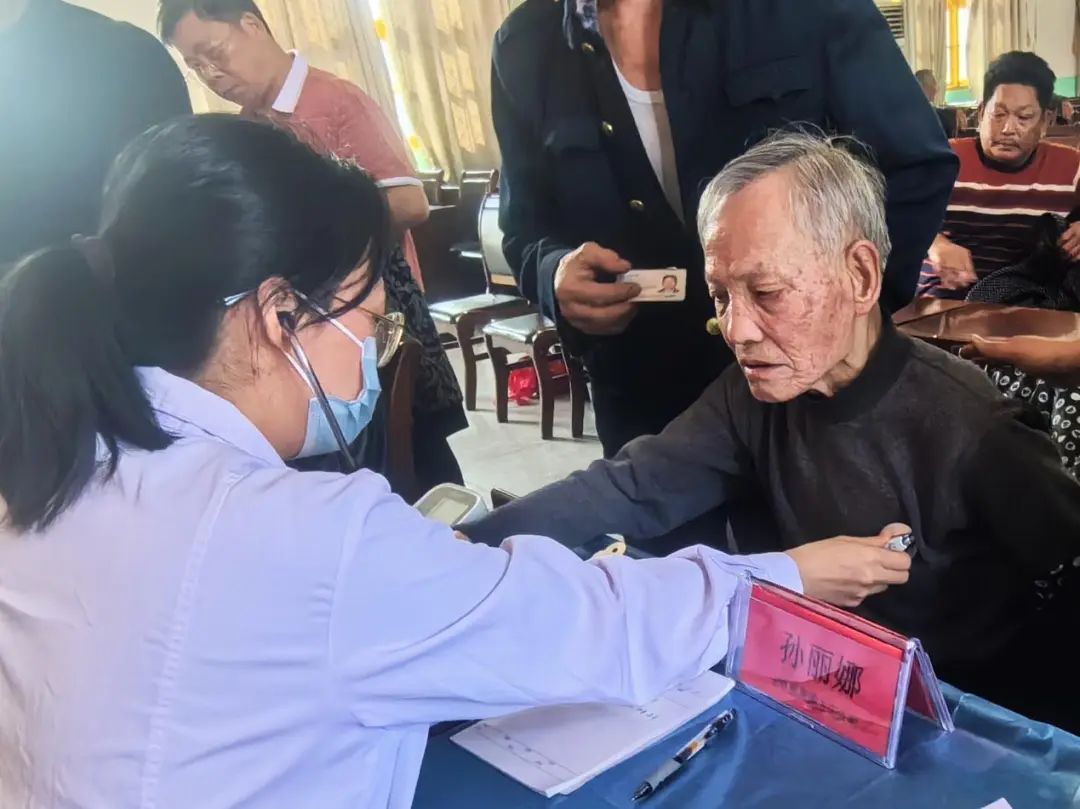 “老战友咱不急,慢慢说!放松来,我先给您听诊……”孙主任微笑着耐心安抚林玉霖急躁的情绪。问诊、听诊、查看报告单、询问正在服用的药品名称等,经过一系列检查,孙主任为林玉霖制定了一套详细的用药指导和保健常识。林玉霖认真听完露出了笑容,陪同的家人说:“从乡镇去省城看病路途远,排队挂号做检查时间长,一天都没法来回,老人家不肯出门,很固执劝不动……这下好了,家门口来了大专家太贴心了。”