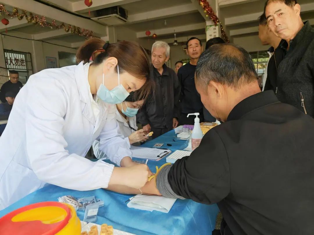东峤镇优抚对象正在进行抽血检查