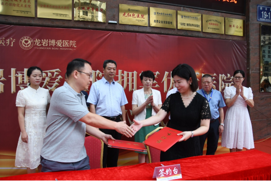 仪式现场,双方就医疗优待服务相关内容达成共识,签署了《龙岩市退役军人和其他优抚对象医疗优待服务合作协议》,张华玉和刘斌共同为龙岩博爱医院拥军优抚医院揭牌。
