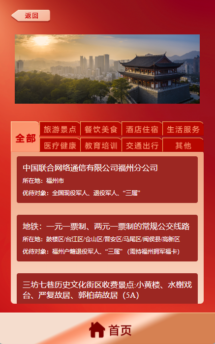 点击所要了解的地市优待项目清单。