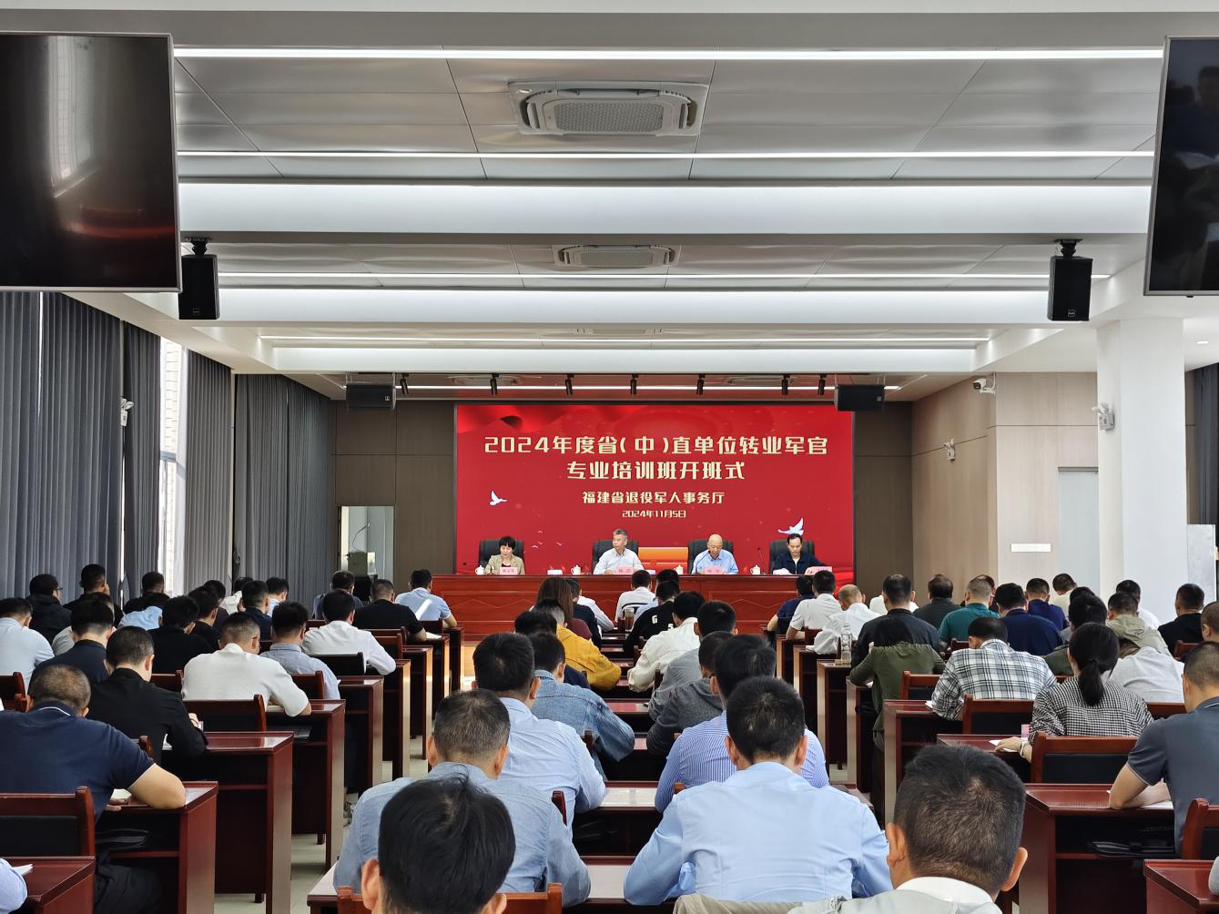为指导帮助转业军官实现工作转轨、事业转型、人生转段,11月5日上午,由省退役军人事务厅组织的为期45天的2024年度省(中)直单位转业军官专业培训班在省退役军人人才开发中心开班。省退役军人事务厅党组成员、副厅长陈浩作开班动员,安置在省(中)直单位的98名转业军官参加培训。