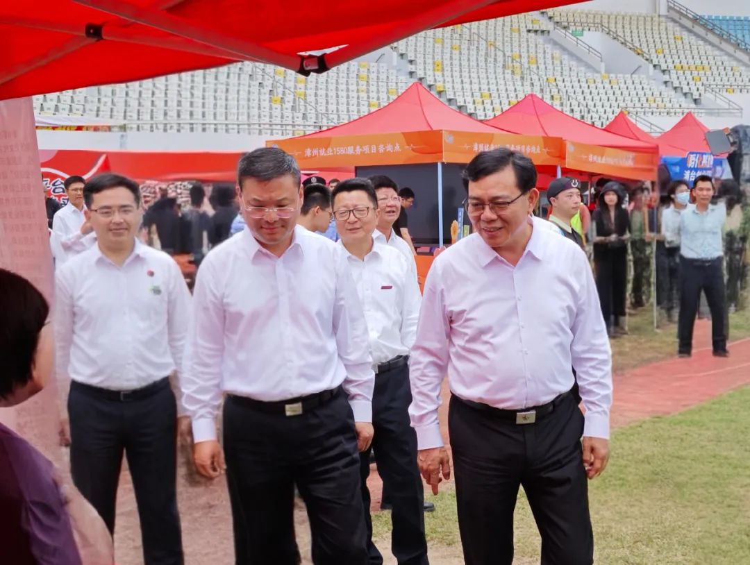 4月17日上午,由漳州市人力资源和社会保障局、市教育局、市国资委、团市委、市退役军人事务局、市残联、市妇联等单位联合主办的漳州市2025年“书记市长送岗留才进校园”大型招聘会在漳州市体育中心举办。漳州市委书记王进足、市长魏东等领导莅临招聘会现场指导,督导推进高校毕业生就业工作。